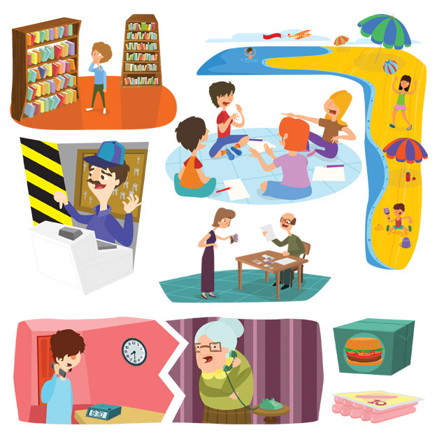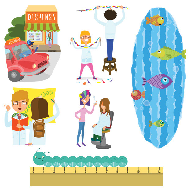Serie de ilustraciones para manual de matemáticas.