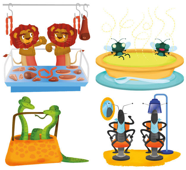 Serie de ilustraciones realizadas para manual de lengua.